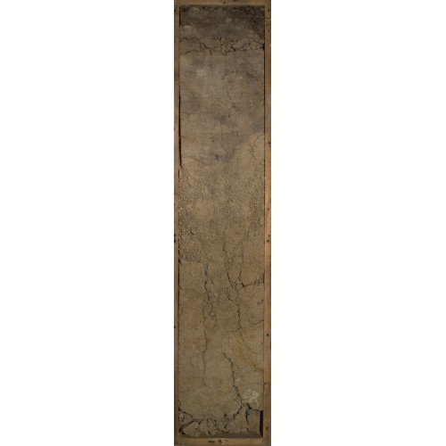 Серовато-сизоватый с ржавыми пятнами. Цвет 2.5Y6/4. Плотный, сцементированный пылеватый средний