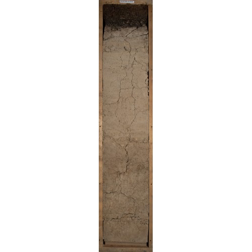BM (55 – 97 см) – серовато-бурый, цвет 10YR5/4. В верхней части видны белесые тона. Новообразования – скелетаны. Очень плотный, сцементированный. Тяжелый суглинок. Весь в трещинах: в верхней части преобладают вертикальные (глубокие), в нижней (ниже 78 см) – горизонтальные (глубокие и широкие, а также есть очень тонкие). Структура – в верхней части глыбистая, в нижней – плитчатая. С 90 см почвенная масса полностью стцеме6нтирована (бесструктурная).