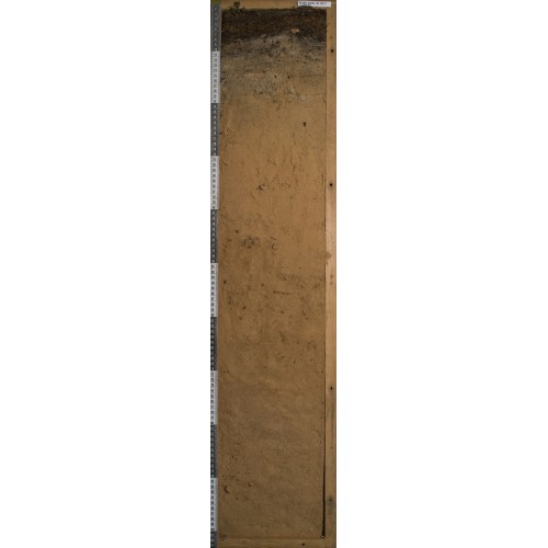 С глубиной количество серых тонов уменьшается. Рыхлый, бесструктурный песок.