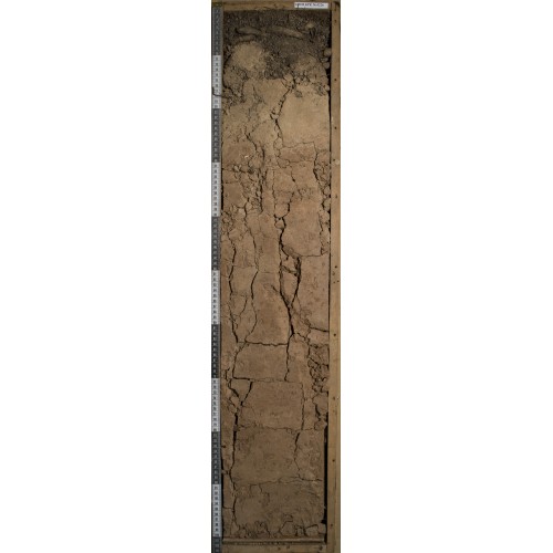 Тяжелый суглинок. Сцементирован и растрескался на крупные вертикально развитые