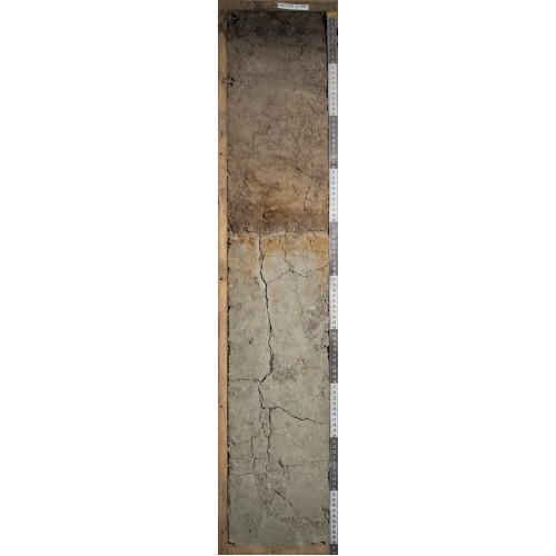 Dg (42 – 100 см) – сизый. Цвет Gley1 7/10Y. В верхней части ржавые затеки, а на границе с BF материал белого цвета. Горизонт весь сцементирован и пронизан одной очень глубокой и мощной трещиной, от которой отходят более мелкие (глубокие) горизонтальные трещины. Включения – единичные очень мелкие корешки, неокатанные камушки.