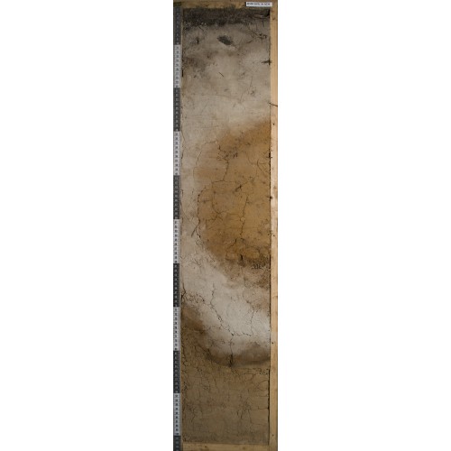оттенком (10YR6/4).Весь в трещинах сцементированный песок. Трещины