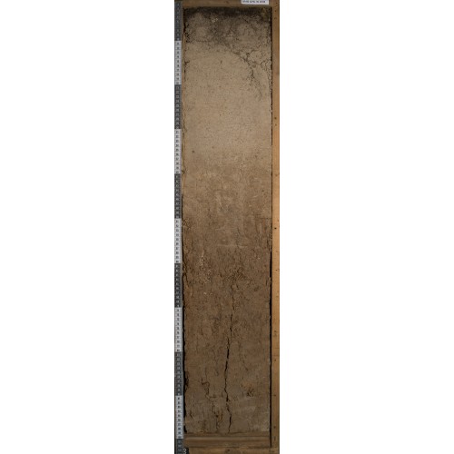 BC (86-100 см) – отличается от вышележащего появлением белесых полос и белыми мелкими пятнышками в самом низу (7.5YR5/4 – на поверхности и 7.5YR5/6 – с внутренней стороны структур). Вертикальные трещины. Есть отдельные призматические структуры, но, в целом, сцементирован в глыбы.