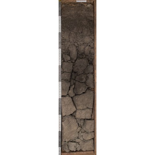 CQ (58-92 см) – буровато-серый с оливковым оттенком (2.5Y5/2 + Gley1 6/10Y). В самом низу ПМ структура сизая. Структура глыбистая. Самая большая структура имеет небольшие горизонтальные (под углом) трещины. Видно, что глыбы состоят из мелкокомковатых и икряных структур. Средний суглинок. Включения очень тонких корешков.