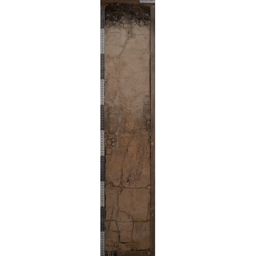 BC (71-97 см) – желтовато-охристый с буровато-белесым налетом (7.5YR6/4). С внутренней стороны структуры ржаво-охристые цвет. Средний суглинок. Почвенная масса сцементирована и за счет крупных вертикальных и горизонтальных трещин разделена на глыбы (в основном, вертикально развитые). Есть несколько мелких структур и в левом углу несколько плитчатых. Бурые затеки по ходам корней.