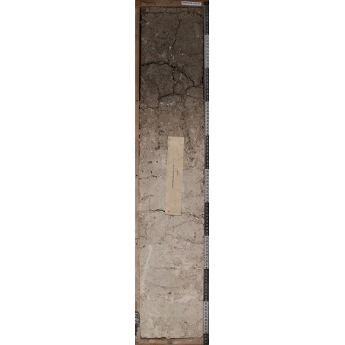 BCca (40-100 см) – белый с сероватым оттенком (близко к 2.5Y8/1) и белыми пятнами. Глыбистая структура. Легкий - средний суглинок. Много крупных и глубоких горизонтальных трещин + мелкие вертикальные трещины. Местами видны ржавые пятна.