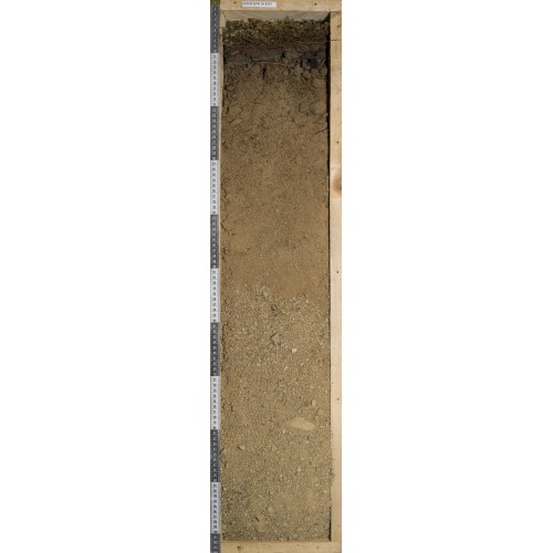 понятно из чего сделан. Граница слабоволнистая, переход резкий. BFe1 (7-8 см) – белесовато-бурый песок (10YR5/3). Очень тонкий горизонт. Некоторые фрагменты
