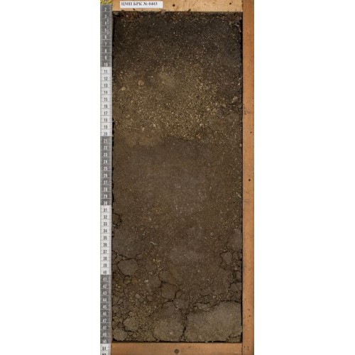 Описание почвенного монолита | AO (0-8(12) см) – черный с коричневой присыпкой (2.5Y2.5/1). Включения растительных остатков, множества