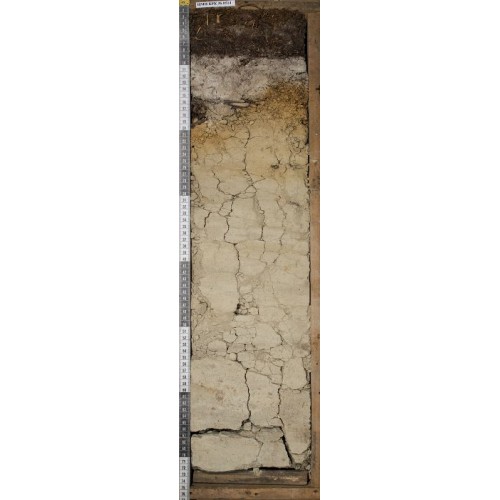 (26 – 70 см) – желтовато-белесый со светло-серым оттенком (2.5Y7/2). Тонкий песок. За счет трещин (горизонтальных и