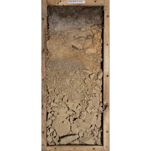 выветрелый щебень. C2 22(23)-30(35) см Палево-серый (6/4 2,5YR), щебень, дресва и мелкозем. M 30(35)-50 см Крупные обломки щебня до 7 см в d. |