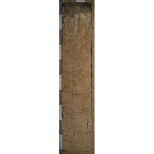 горизонтальной слоистости горизонта (породный признак), переход постепенный. BC (50(55) – 85(90) см) Неоднородная окраска: преобладает оливково-палевая окраска (6/2 7,5YR), встречаются буровато-палевые (6/3 7,5YR) зоны, плотный, глыбистая структура, средний суглинок, на общем фоне заметны темно-серые стяжения, по трещинам – тонкие кутаны, присутствует горизонтальная слоистость, переход постепенный. C (85(90) – 100 см) Серовато-палевый (6/4 7,5YR), плотный, монолитный, суглинистый, косослоистый, рассечен трещинами, присутствуют темно-серые стяжения и красновато-бурые кутаны. |