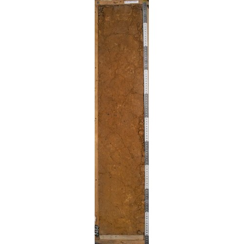 Средний суглинок. Переход постепенный. BC (56-97 см) – более желтый, чем АВ. Буровато-желтый с единичными бурыми пятнами (7.5YR5/6). Новообразования – более мелкие и редкие Mn-конкреции. Практически полностью сцементирован, бесструктурный. Единичные структуры есть только у правой стенки ПМ: ореховатые разного размера и ореховато-призматические. Тонкие трещины. Средний суглинок. Продолжение: 2 метр №у1530; №м3031. |
