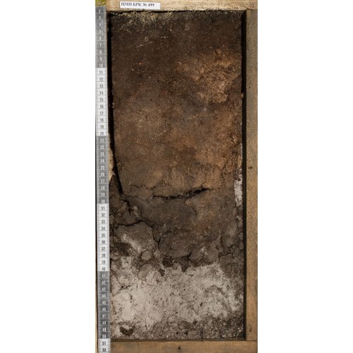 T2 (6(12)-26(30) см) Неоднородная толща, состоящая из фрагментов светлого коричневато-желтого торфа слабой степени разложенности с преобладанием сфагнового мха, выраженного в правой части монолита, и желтовато-бурого торфа более высокой степени разложенности. Переход заметный по цвету, граница неровная.
