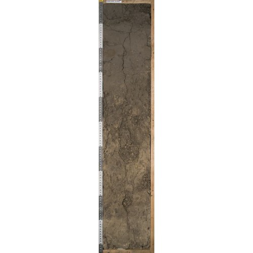 ровная, переход заметный по появлению палевых зон. BI (40-100 см)) Неоднородно окрашен, сочетание буровато-палевых (6/3 10YR) и темно-серых с буроватым оттенком морфонов (за счет потеков гумуса, кутан), ореховатый, рассечен сетью трещин, пронизан тонкими корнями, суглинистый, на глубине 56-64 см и 78-84 см полости (кротовины), содержащие копролиты. Содержит гумусовые затеки. С 85 см бурно вскипает, карбонаты в рассеянной форме. Выше – потрескивает. |