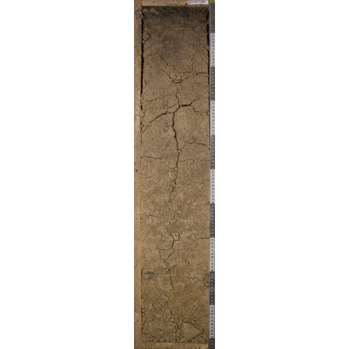BC1 (30-75см) Палевый (7/3 10YR), самый светлый в профиле, на общем фоне заметны темные пятна-примазки с диффузными границами, суглинистый, плитчато-творожисто-мелко-комковатый, содержит включения щебня, масса горизонта рассечена сетью трещин, в т.ч. крупной вертикальной, содержит редкие корни, переход постепенный по окраске.