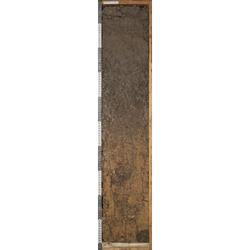 граница слабоволнистая, переход ясный по цвету и структуре. BEL[hh] (22(23)–52(56) см) Неоднородно окрашен: