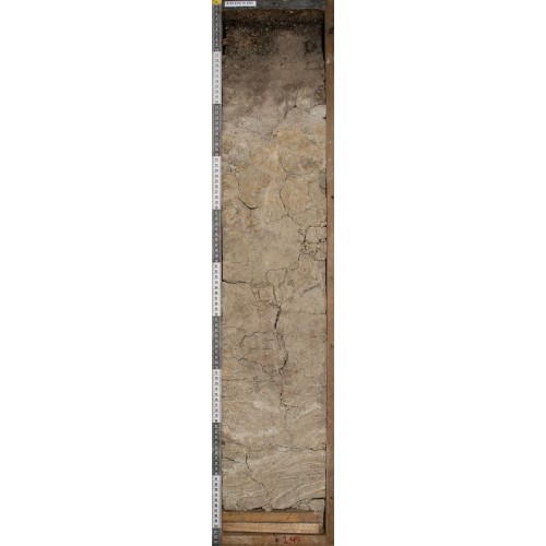 ВТ (40-64(75) см) – бурый с серыми и сизыми пятнами, 2.5Y5/2 + 10YR6/2. Сизые тона идут в основном по трещинам, серые – как затеки. Средний суглинок. Хотя сизые тона более легкие по гран. Составу. Много трещин разного размера и глубины, но есть одна крупная вертикальная и глубокая трещина. Граница сильно волнистая, переход заметный.