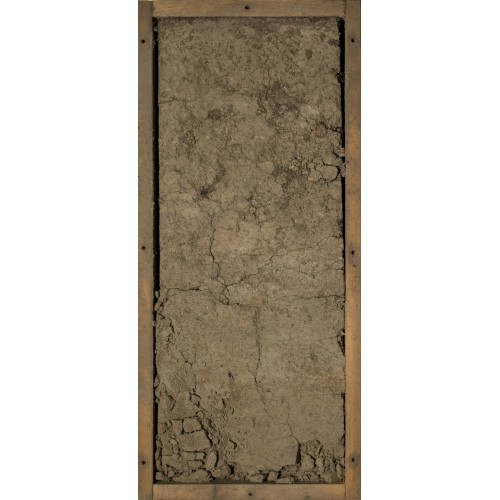 CG (29-49 см) – серовато-сизый с бурым оттенком, 2,5Y6/3. Плотный. Супесь - легкий суглинок. Сверху горизонтальная трещина (практически на границе с вышележащим горизонтом) и 2 крупных вертикальных: одна посередине горизонта, другая – слева. Вторая трещина практически отделяет огромную структуру, которая подразделяется на плитки разного размера (многопорядковая). Включения – мелкие корешки.