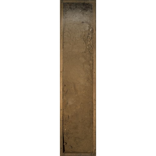 BF (16-55 см) – цвет серовато-бурый, 10YR5/6. Насыщенность бурыми тонами увеличивается с глубиной. Плотность варьирует от уплотненного до плотного. Включения – окатанные и неокатанные камни размером до 0,7 см. окатанные камни приурочены к правой стороне ПМ и глубине 17-34 см. Переход постепенный.