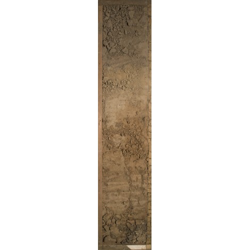 буровато-серый, цвет между 10YR6/3 и 10YR5/3. Неоднородный по плотности: в местах, где есть